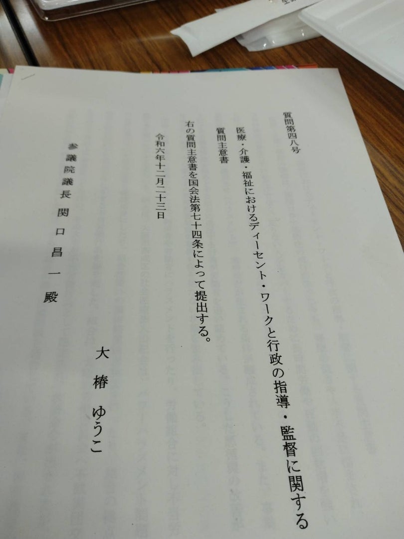 この度、社民党の大椿ゆうこさんが、ケアワーカーズユニオン山紀会支部や介護現場の問題を「医療・介護・福祉におけるディーセント・ワークと行政の指導・監督に関する質問主意書」として国会へ提出してくれました!!