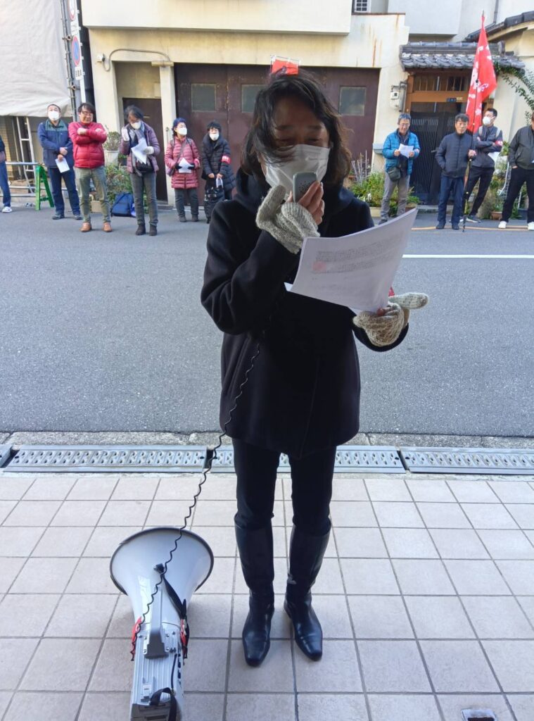組合は、12月16日、拠点職場、やまき介護すてーしょんの中で最後に残ったグループホームの一方的な閉鎖を通告してきた社会医療法人山紀会に対する抗議行動を、おおさかユニオンネットワークの仲間、支える会の仲間とともに闘いました。